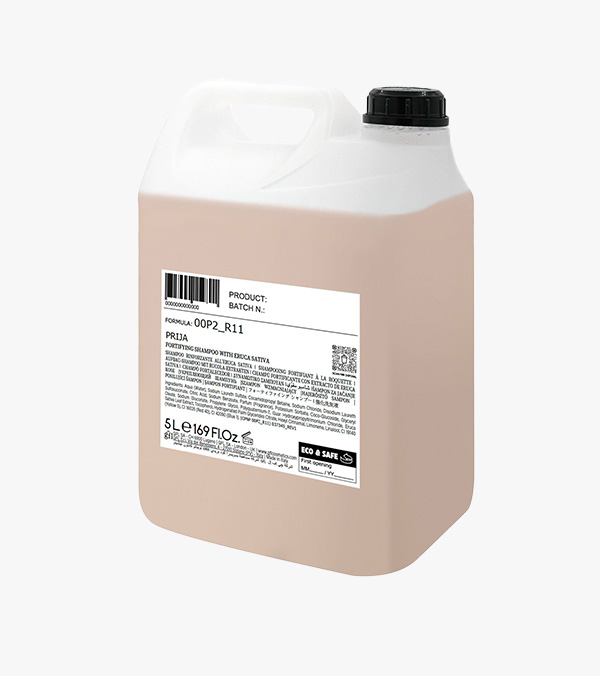 Șamponul fortifiant Prija cu extract de Eruca Sativa este conceput pentru curățarea delicată a părului și a scalpului în hoteluri, spa-uri și centre wellness. Formula sa echilibrată curăță eficient, menținând în același timp confortul scalpului și aspectul sănătos al părului.